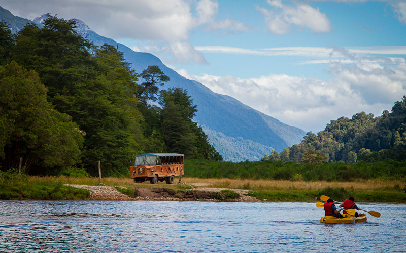 La ruta comienza remando por la ribera noreste del lago, permitiendo disfrutar de los hermosos matices verdes del agua y los bosques bajos de la cordillera. Posteriormente, se atraviesa el lago hacia la desembocadura del río Peulla, donde nos aproximamos a un sector de arenales para realizar una pausa. Luego, retomaremos los kayaks para remar de regreso hasta la playa en el sector del muelle, punto de inicio de la actividad.