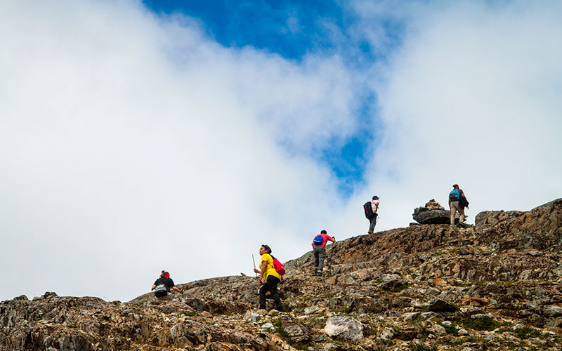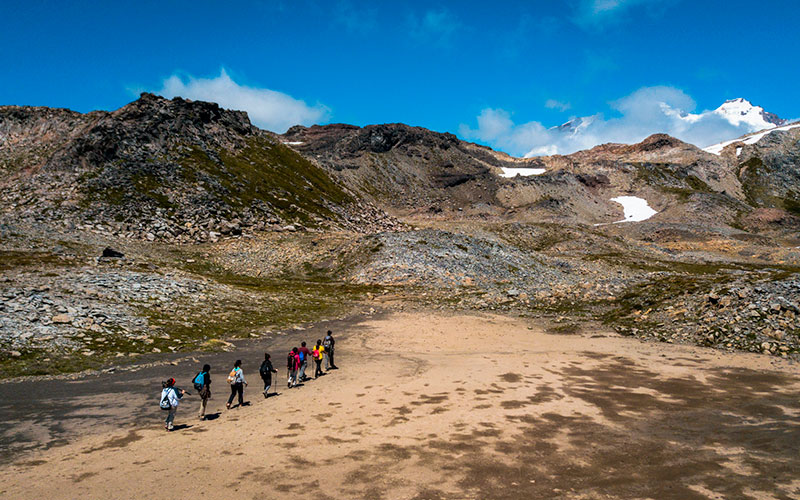 Vestimenta/equipo: Zapatos de trekking, vestimenta por capas (primera capa de secado rápido, segunda capa de abrigo, tercera capa corta viento), mochila, agua, protector solar, lentes de sol, guantes.